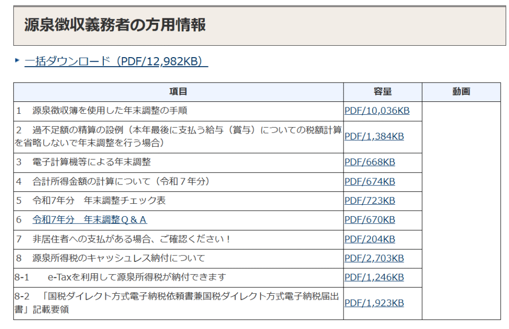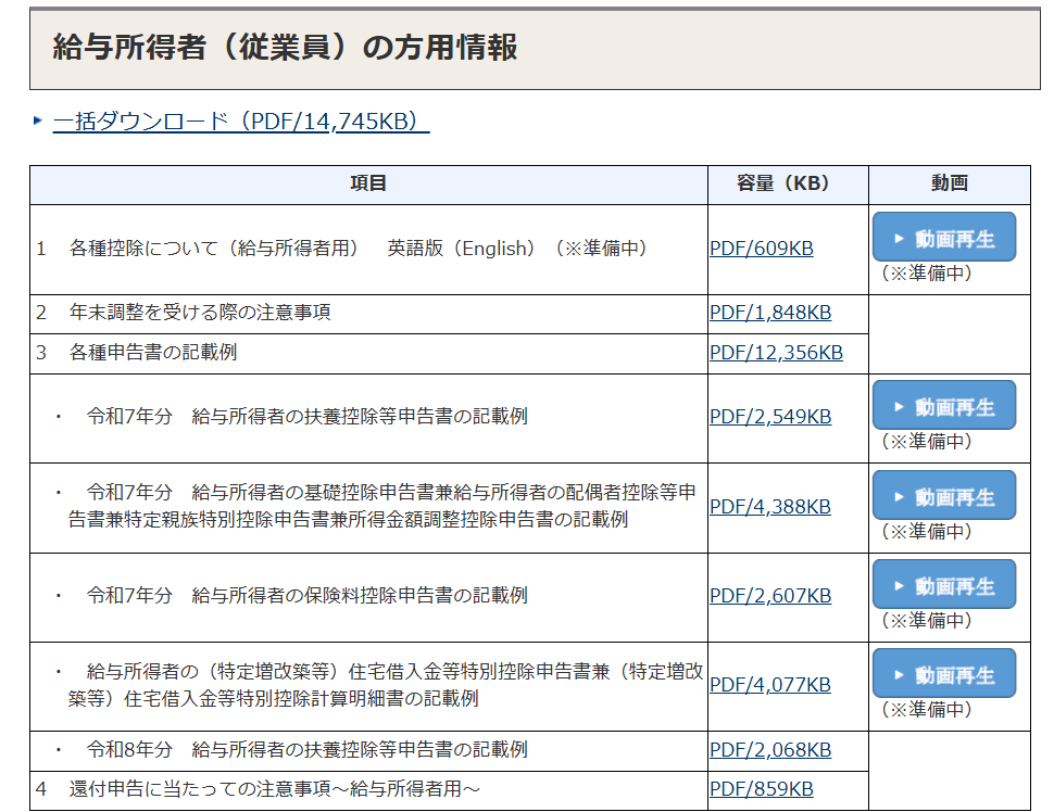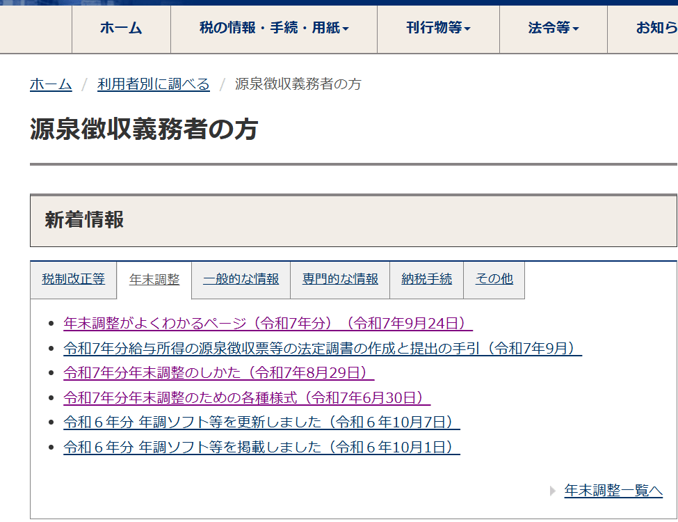 国税庁ホームページ「令和7年分年末調整のしかた」