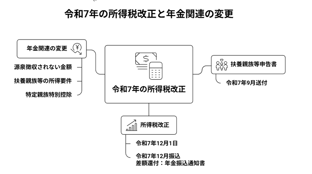 しかし、年金受給者の扶養親族等申告書の配布が9月へと早まったことと、12月の年金振込みも今回の税制改正が影響する予定です。