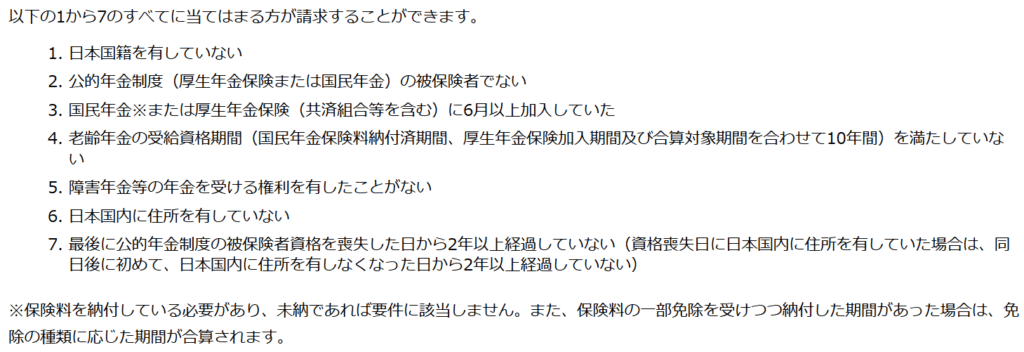 脱退一時金を受け取ることができるのは以下のすべてを満たす人です。
