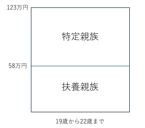 19歳から22歳までの子どもだけをピックアップすると、合計所得金額58万円を境に以下のように区分することができます。