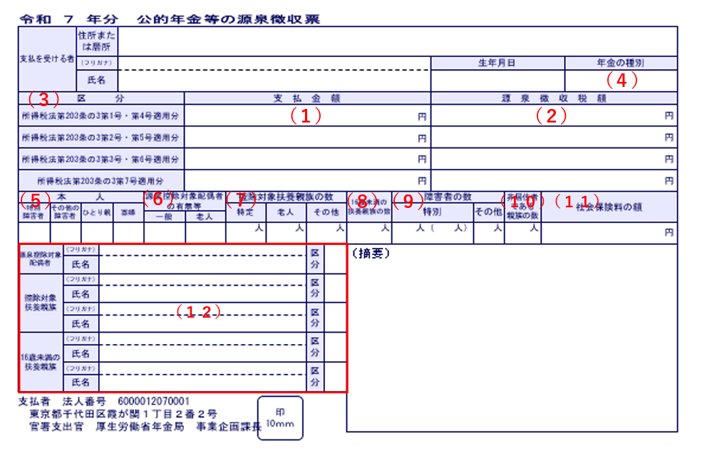 令和7年分の公的年金等の源泉徴収票におけるポイントは源泉徴収税額です。