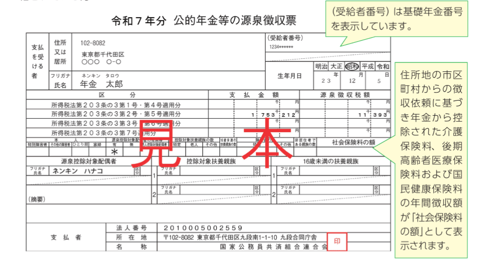 以下、日本年金機構から届く源泉徴収票の見本です。