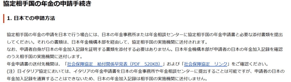 日本年金機構ホームページ 協定相手国の年金申請の方法 より一部抜粋