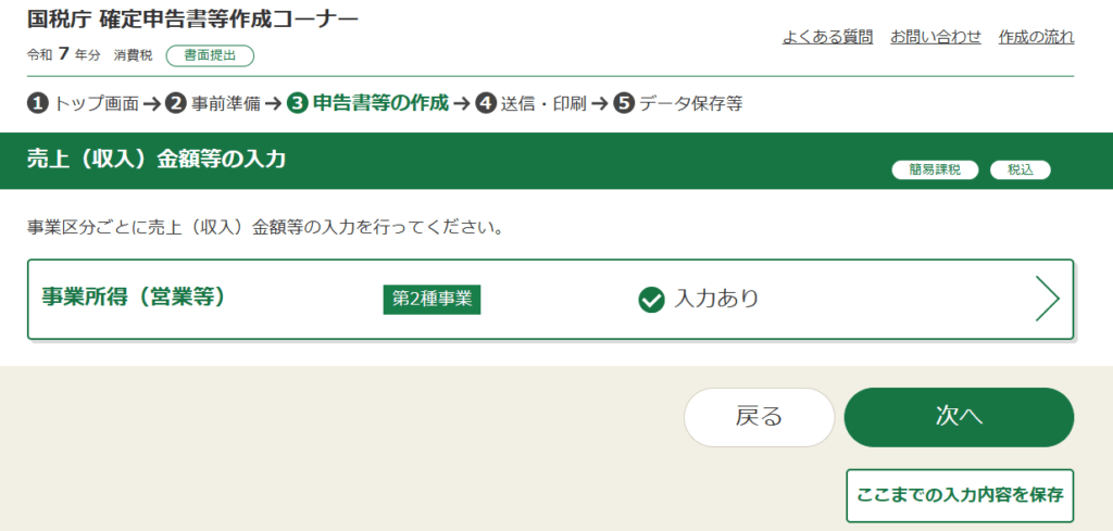 売上(収入)金額等の入力画面ですが、ここからが今日の本題です。