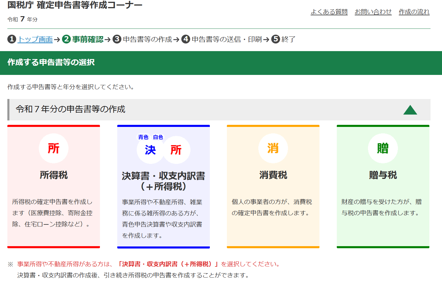 国税庁ホームページの確定申告書等作成コーナーを利用すると所得税や消費税・贈与税の確定申告書を作成することができ便利です。