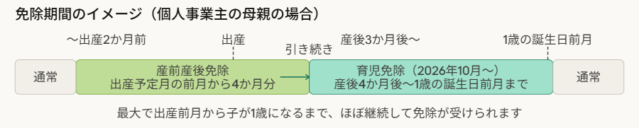 この場合、子どもを出産する前と後(産前産後)で国民年金を免除する制度があり、さらに令和8年10月から育児期間についても国民年金を免除する制度ができます。