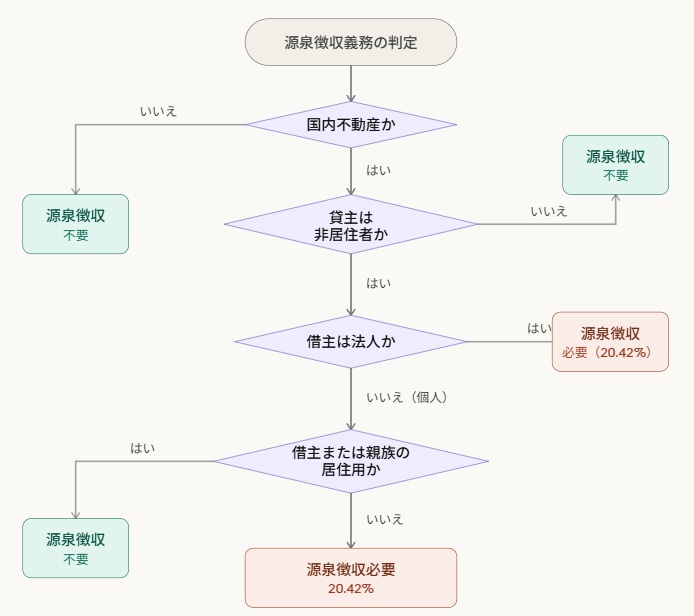 先ほどの事例のように、日本の法人が支払った賃借料については、使用目的にかかわらず(→事業用か居住用かを問わない)源泉徴収する必要があります。